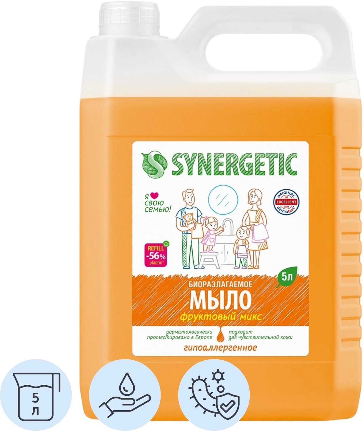 Мыло жидкое 5 л SYNERGETIC "Фруктовый микс", гипоаллергенное, биоразлагаемое, 105502 1 шт .