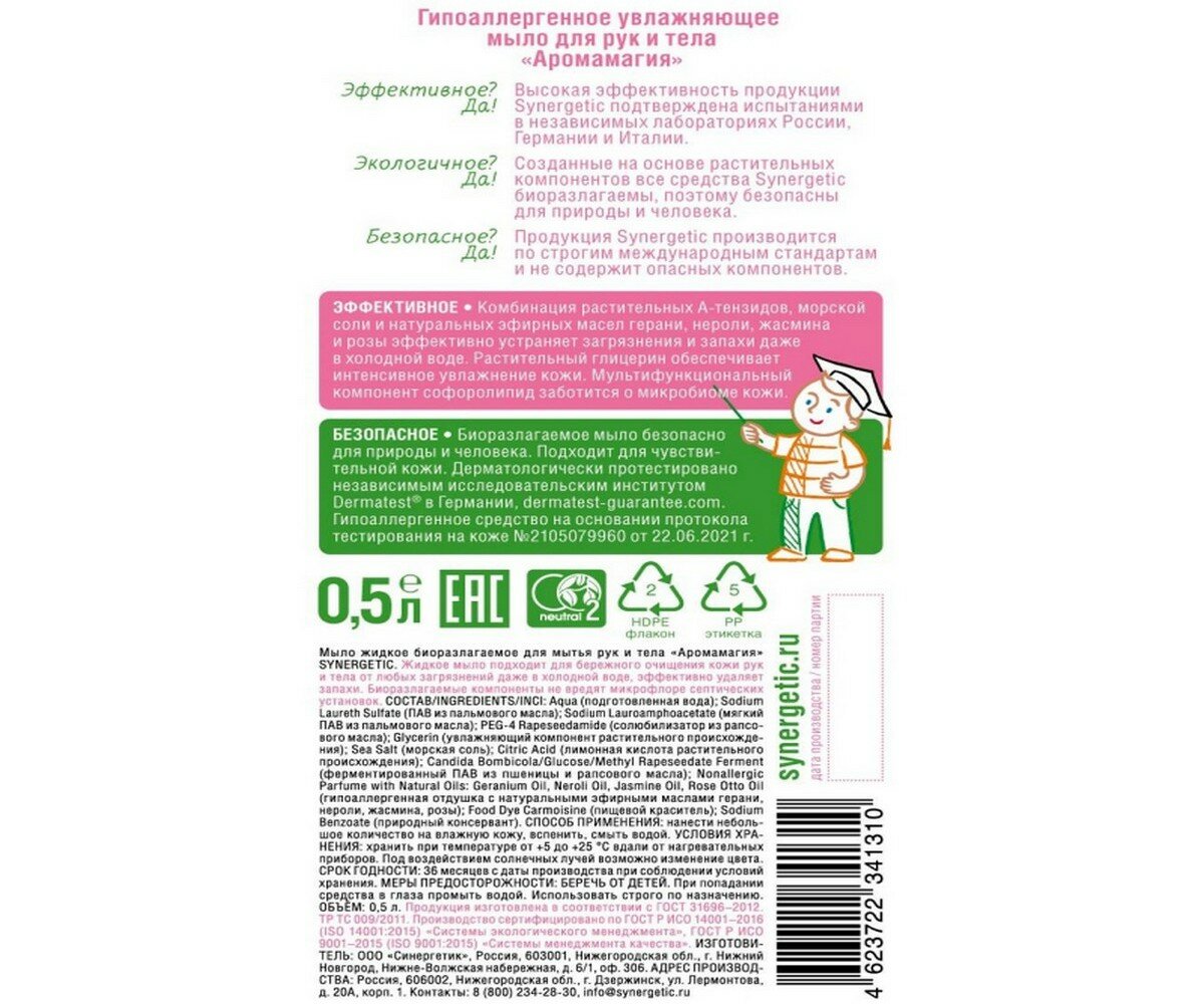 Жидкое мыло Synergetic Аромамагия гипоаллергенное 500ml 4623722341310