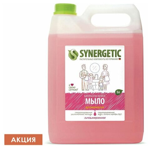 Мыло жидкое 5 л SYNERGETIC, «Аромамагия» гипоаллергенное, биоразлагаемое, ЭКО