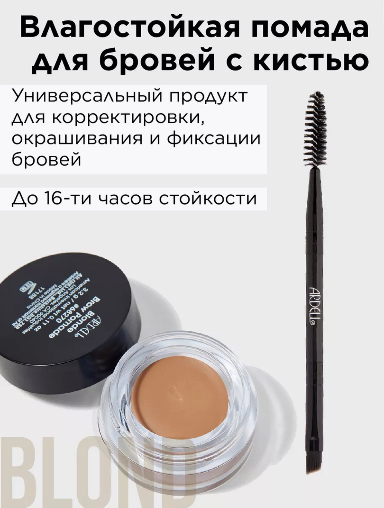 Ardell Brow Pomade (Blonde) Влагостойкая помада для бровей с кистью, 3 г (тон светло-коричневый)