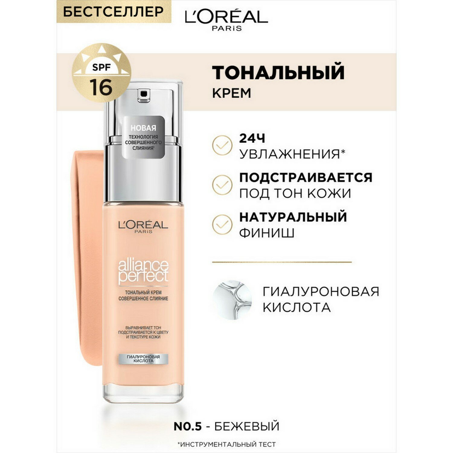 Ниже Вы можете прочитать отзывы на L'Oreal Paris, Тональный крем ALLIANCE PERFECT совершенное слияние обогащенный гиалуроновой кислотой, тон 0.5N, SPF 16, 30 мл, ознакомится с подробными характеристиками, посмотреть интересные обзоры и фотографии на L'Oreal Paris, Тональный крем ALLIANCE PERFECT совершенное слияние обогащенный гиалуроновой кислотой, тон 0.5N, SPF 16, 30 мл.