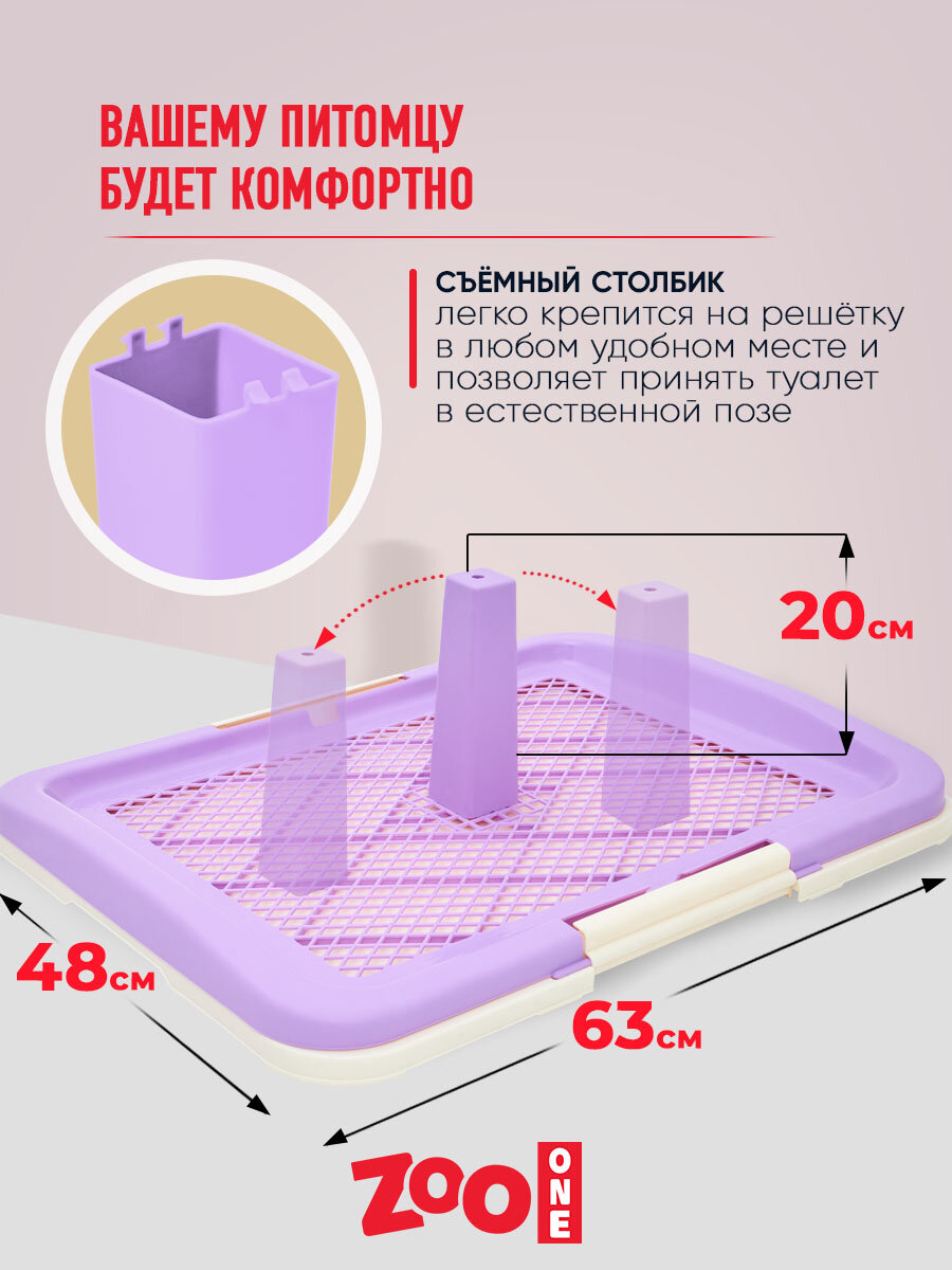 Туалет лоток для собак ZooOne со столбиком 63*48*6(20) см, фиолетовый