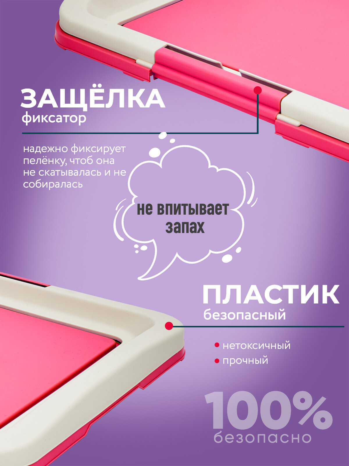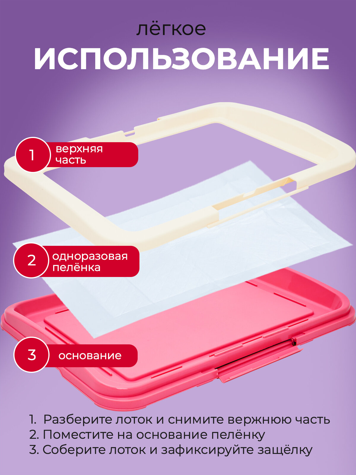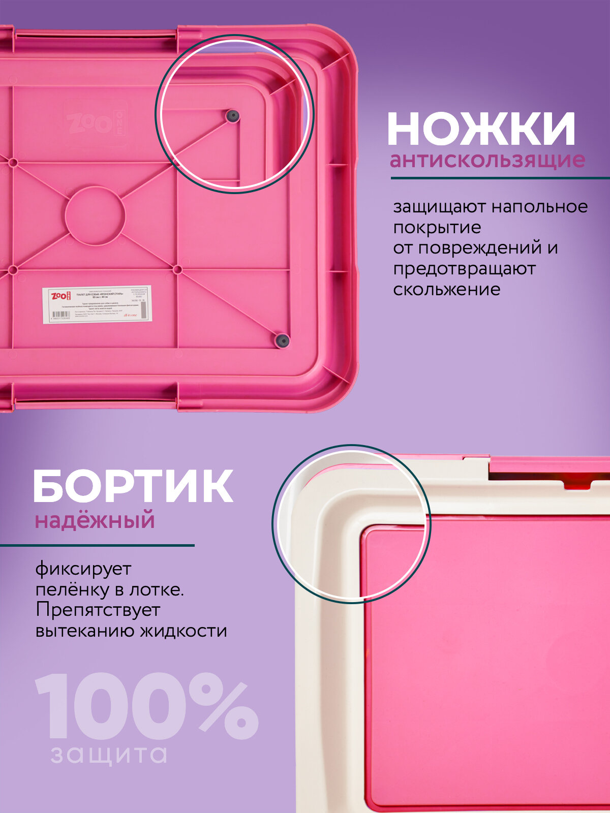 Туалет лоток для собак ZooOne "Японский стиль" 64*49*6 см, под одноразовую пелёнку, розовый, P103-03