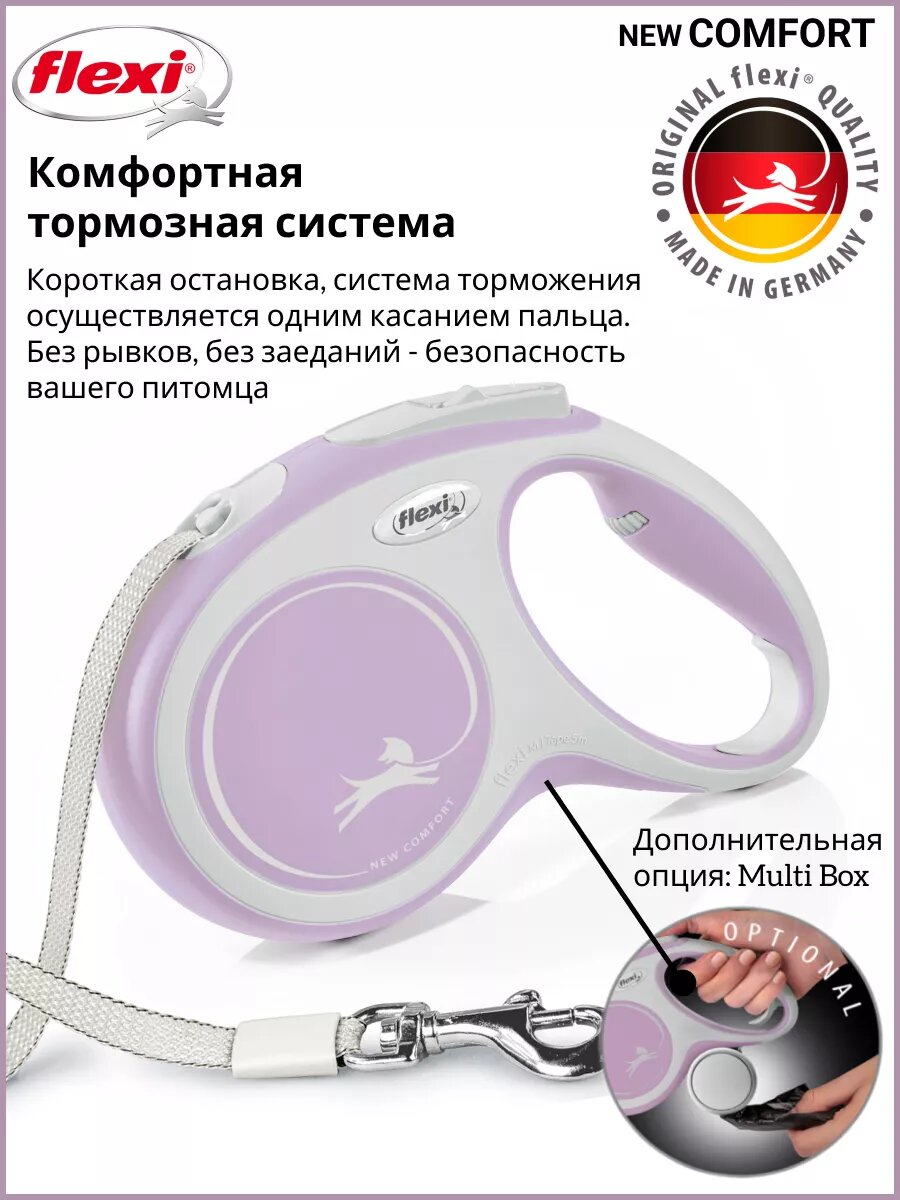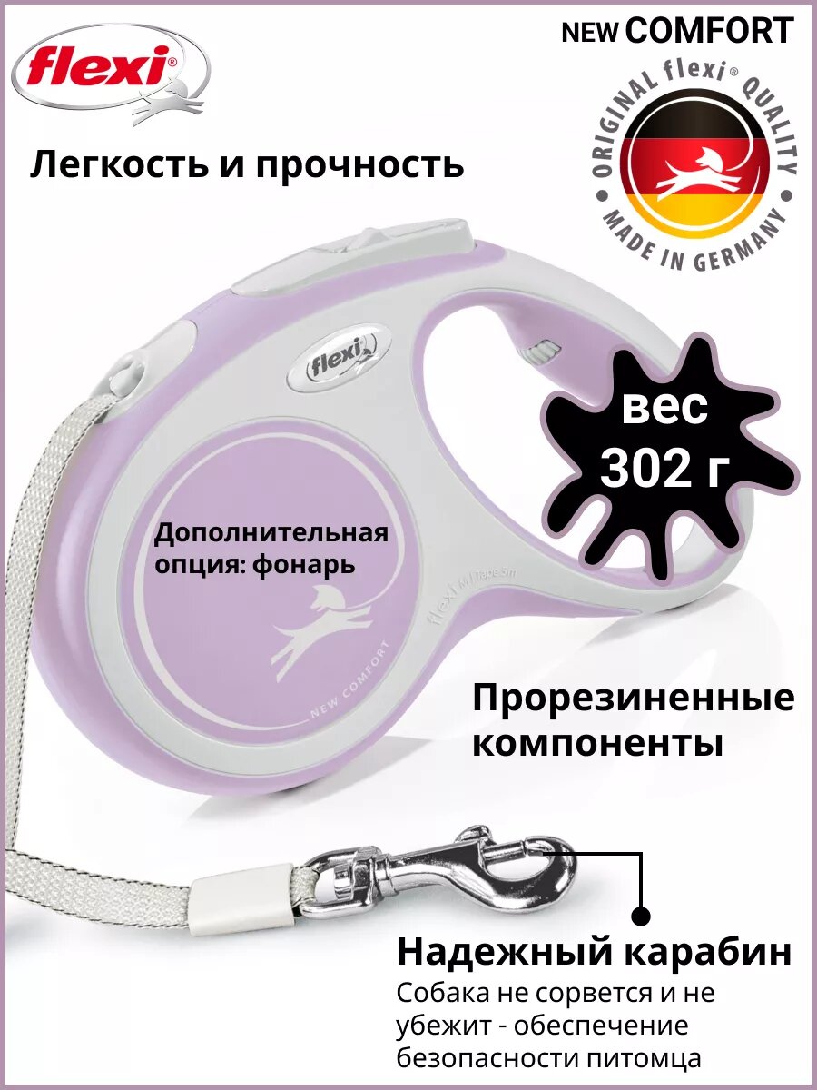 Flexi New Comfort M - Поводок-рулетка для собак, ленточный, 5м до 25кг pp44727 Светло-Голубой
