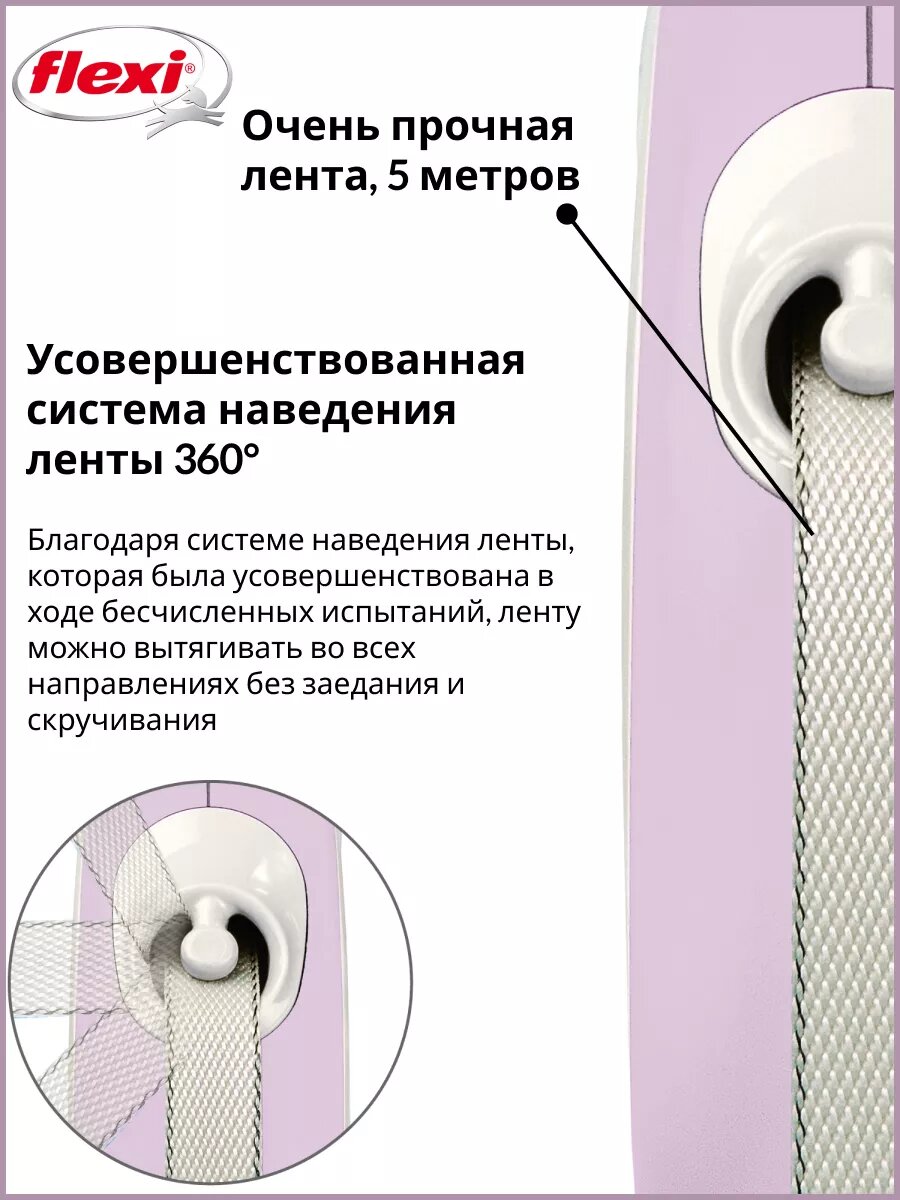 Поводок-рулетка для собак Flexi New Comfort M ленточный розовый/серый 5 м
