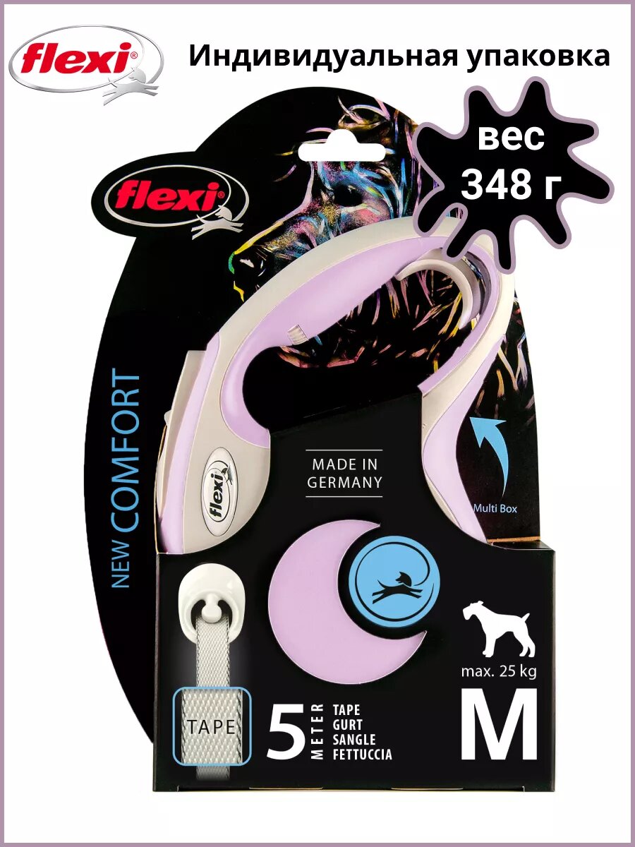 Flexi New Comfort M Tape 5м до 25кг поводок-рулетка ремень, розовый