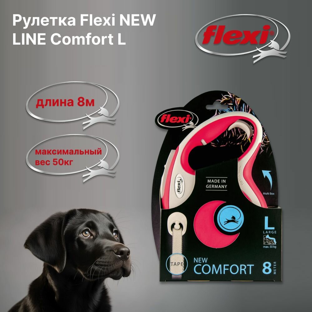 Flexi New Comfort L Tape 8м до 50кг поводок-рулетка ремень, красный