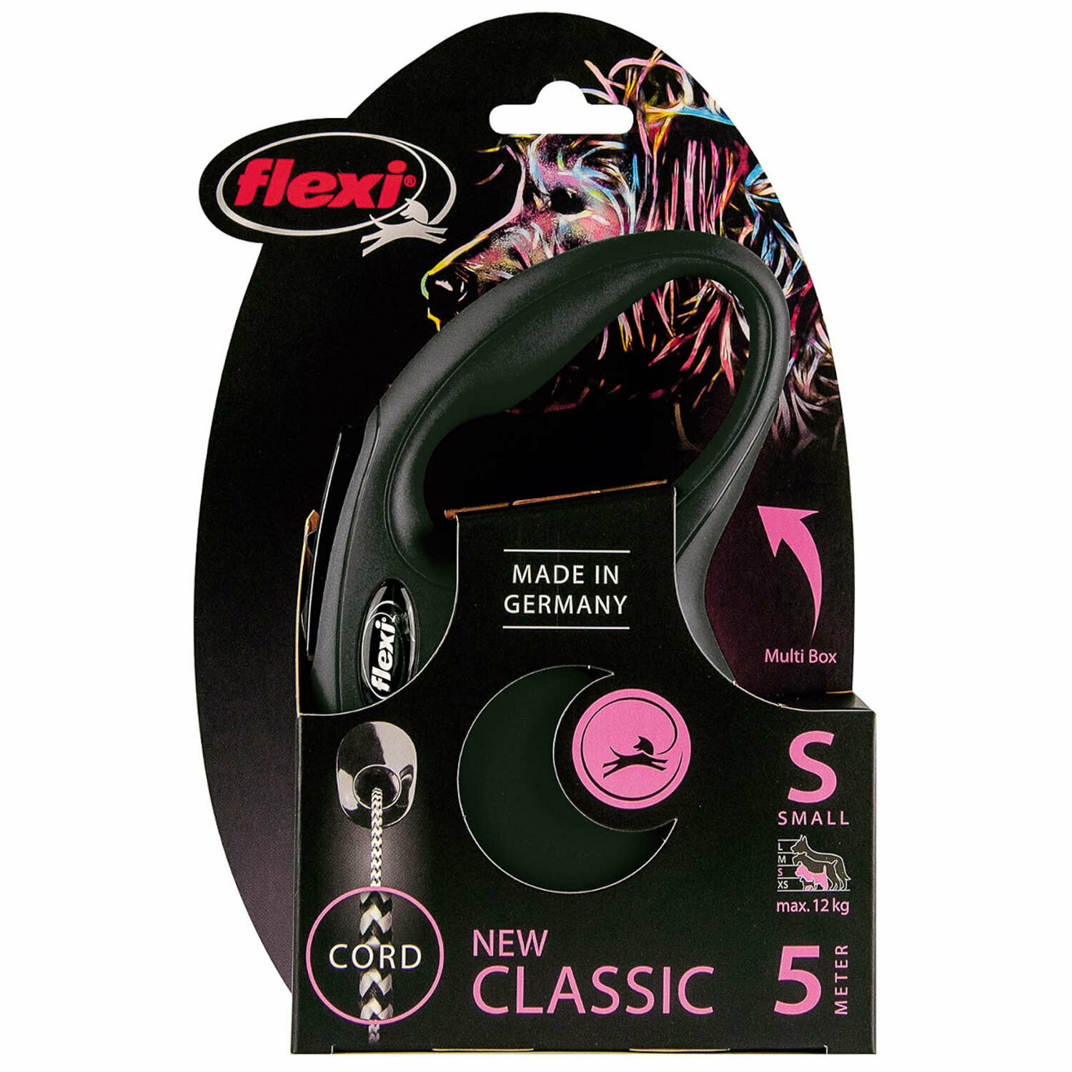 FLEXI NEW CLASSIC CORD – Флекси тросовый поводок-рулетка для животных, 5 м, размер S, розовый (1 шт)