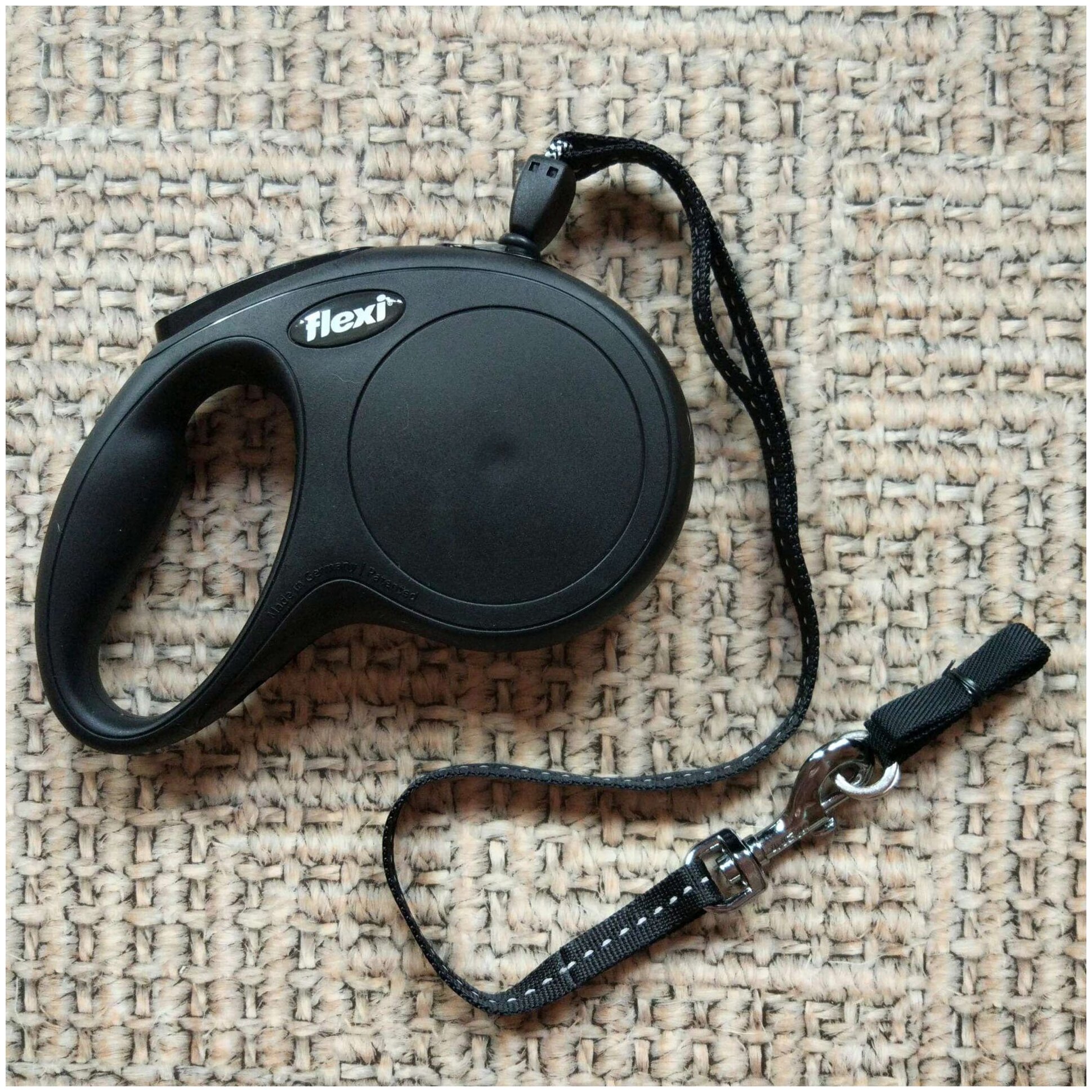 На замену в кладовке была рулетка, подаренная родственниками "но нейм" производителя со встроенным фонариком и мешками для какашек. Это просто ужас, ее хватило на 3 прогулки после чего фиксатор просто разлетелся. Пришлось экстренно заказывать новую. И чтобы не испытывать судьбу было принято купить рулетку Flexi но уже размера "М", чему очень рад. Так как взяв ее в руку сразу чувствуется, что это качественная вещь и прослужит она как минимум два года. |