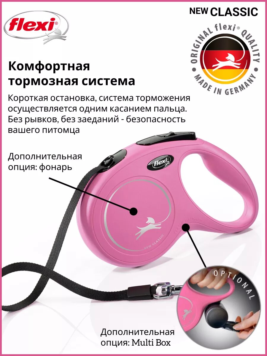 Купить Поводок-рулетка Flexi New CLASSIC М, 5 м, 25 кг, розовый