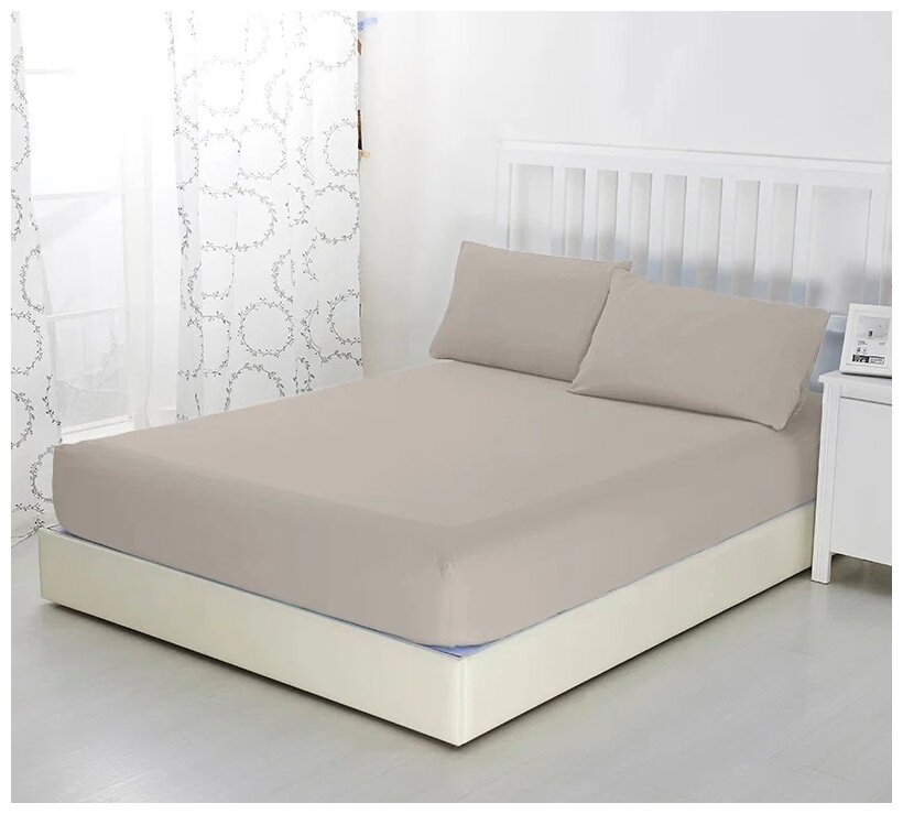 Простыня на резинке Бежевая, 120х200х20, трикотаж, 100% хлопок