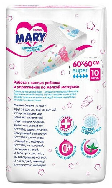 Пеленки одноразовые Mary 60*60 см 10 шт. интересное: