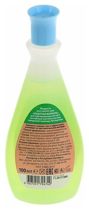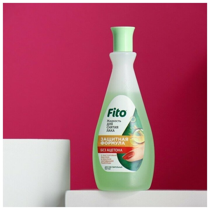 Fito Косметик Жидкость для снятия лака Защитная формула для чувствительных ногтей, без ацетона, 100 мл