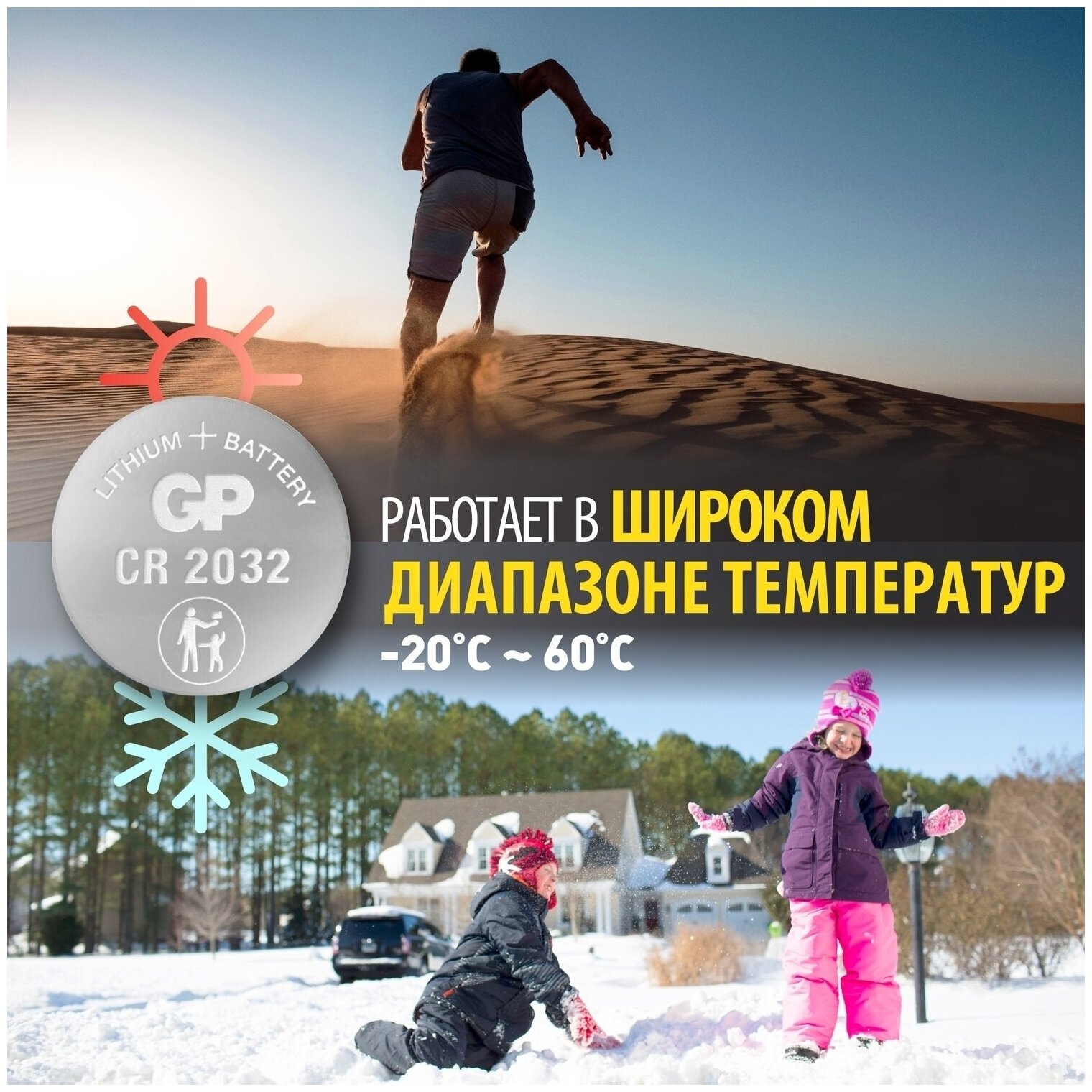 Батарейки литиевые дисковые таблетки GP Lithium CR2032, 3 В, набор 10 шт