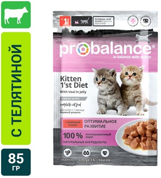 ПроБаланс Kitten 1'st Diet пауч для котят с Телятиной в желе 85г