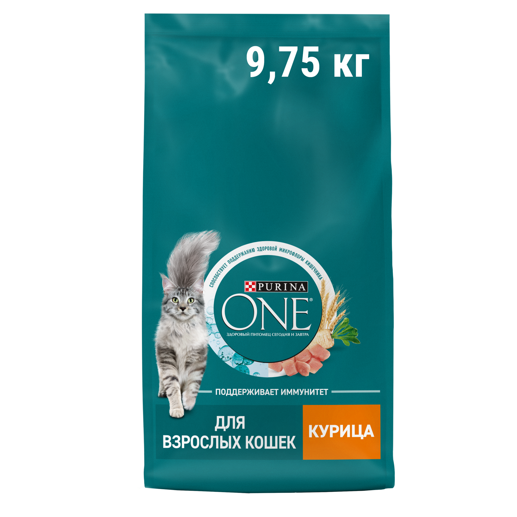Сухой корм для взрослых кошек PURINA ONE с курицей, 9.75 кг