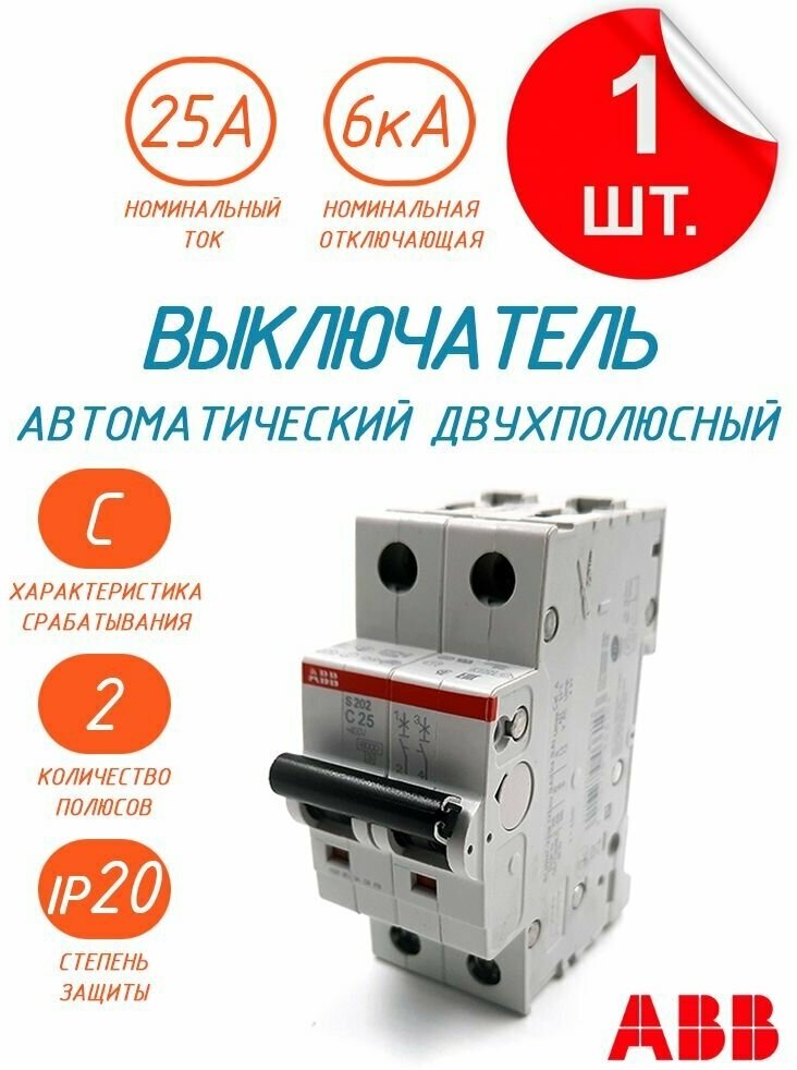 ABB Выключатель автоматический 2-полюсной S202 C25