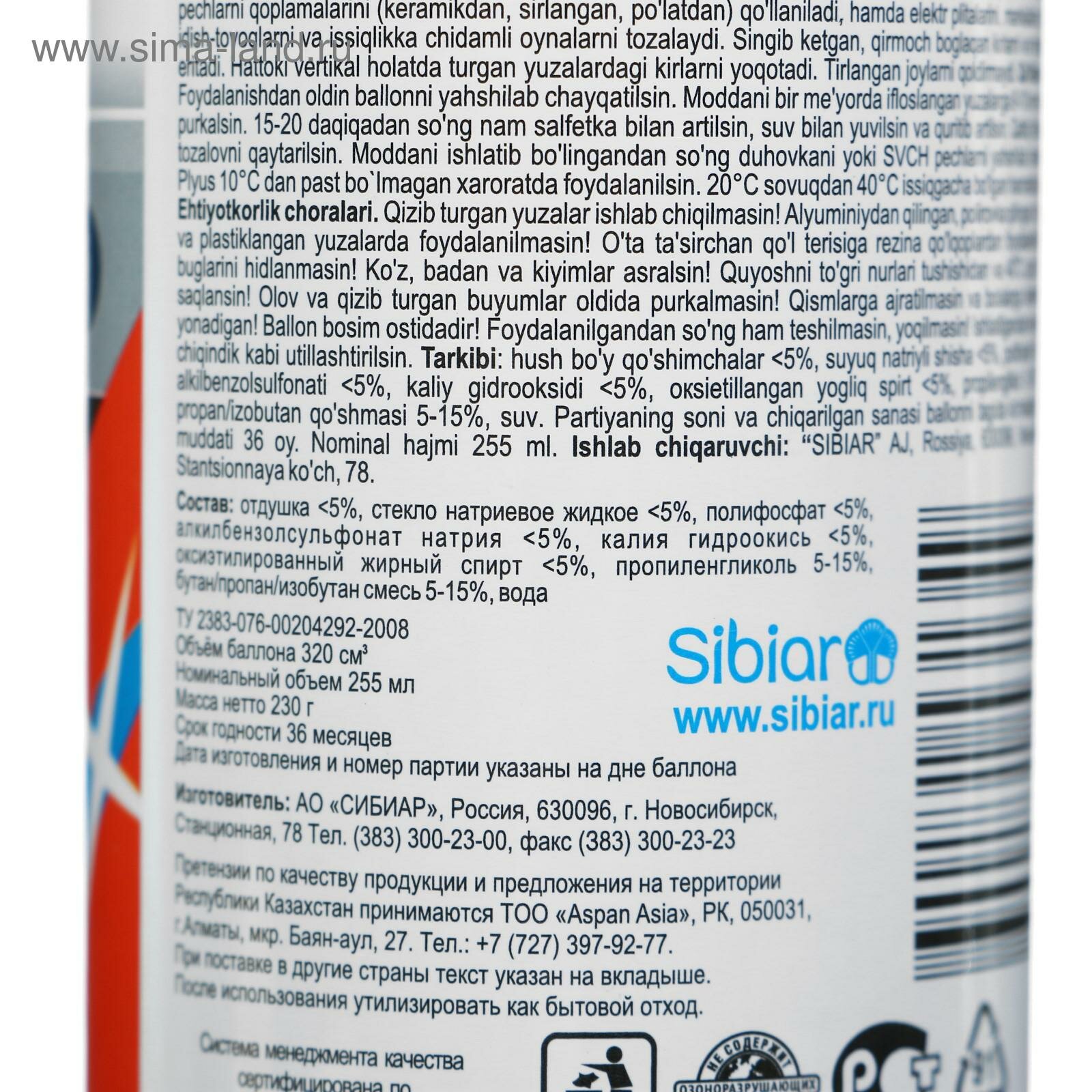 Парма 2, очиститель для керамических и СВЧ-печей "Сибиар" (255 мл) - 1 шт