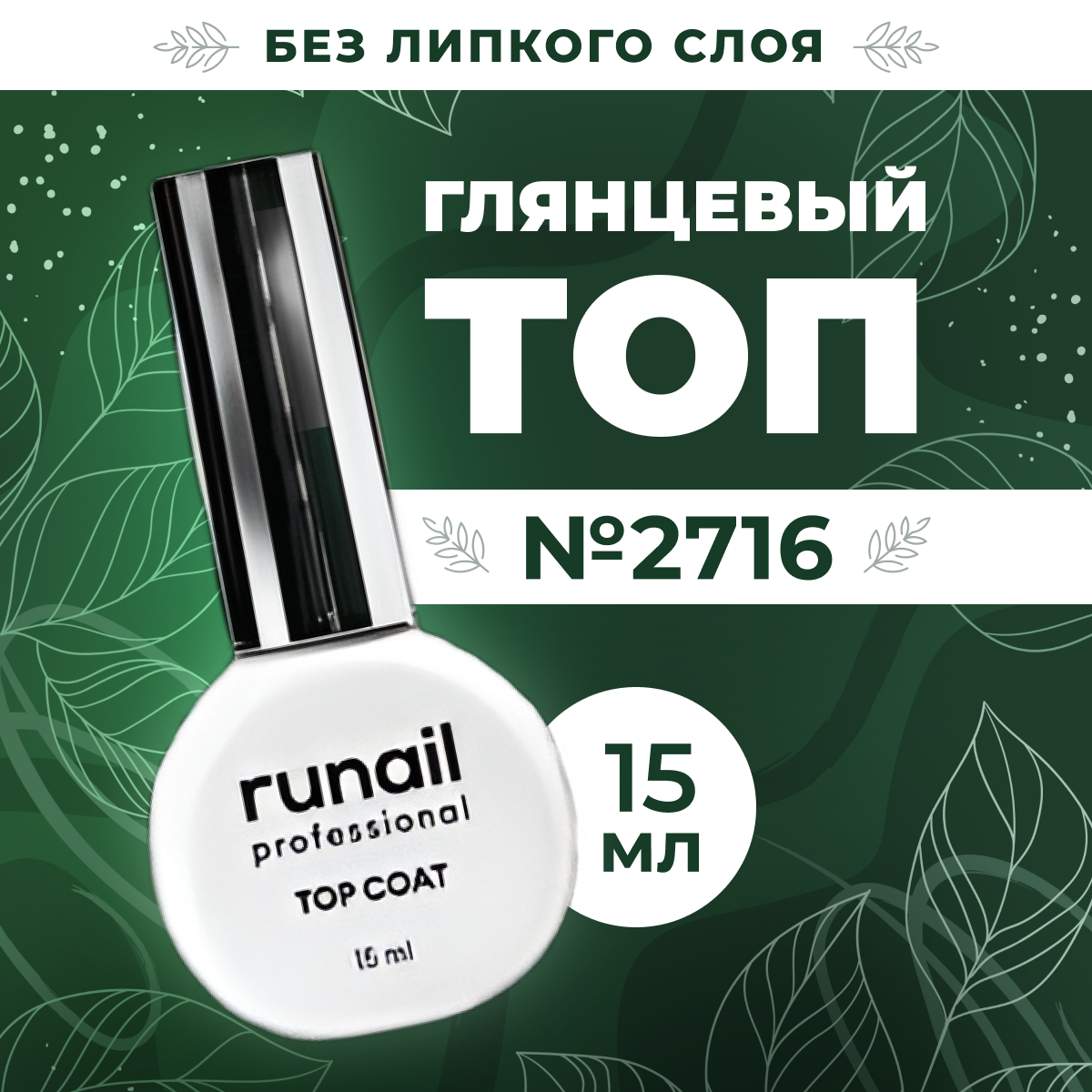 RuNail, Top Сoat - глянцевый топ для гель-лака (без липкого слоя), 15 мл