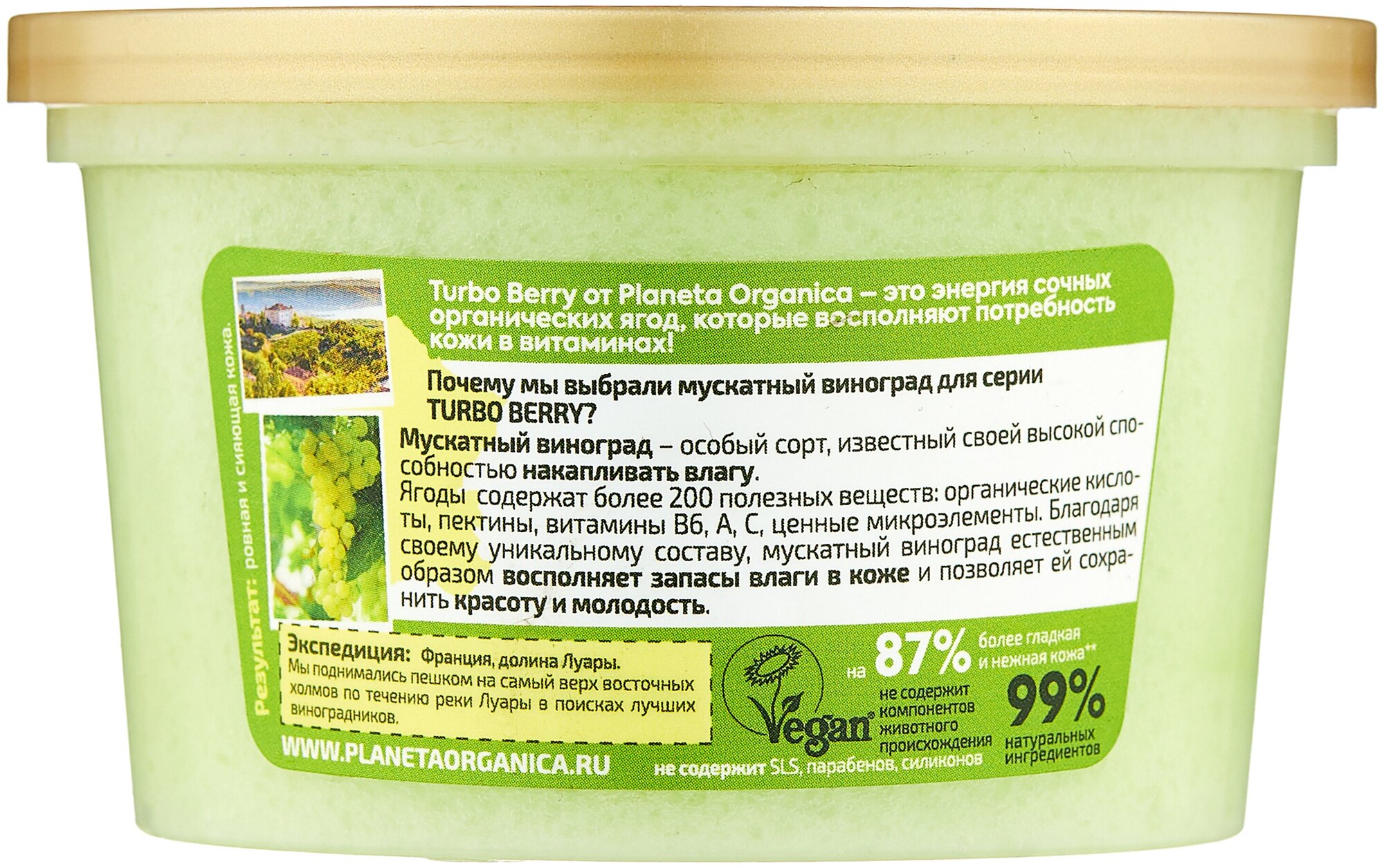Скраб для тела Planeta Organica Turbo Berry, Энергия и Увлажнение, Био Виноград, 350 г интересное:
