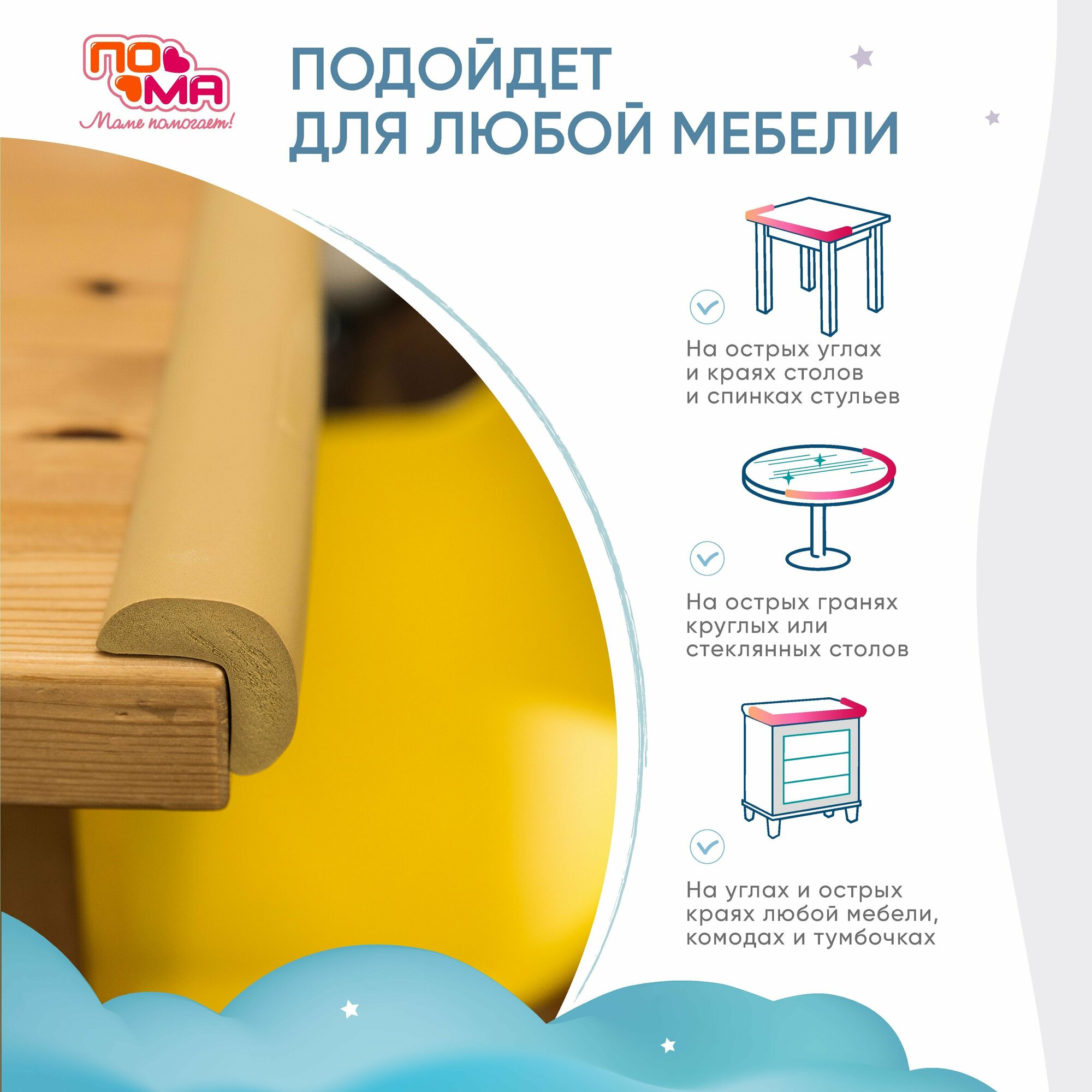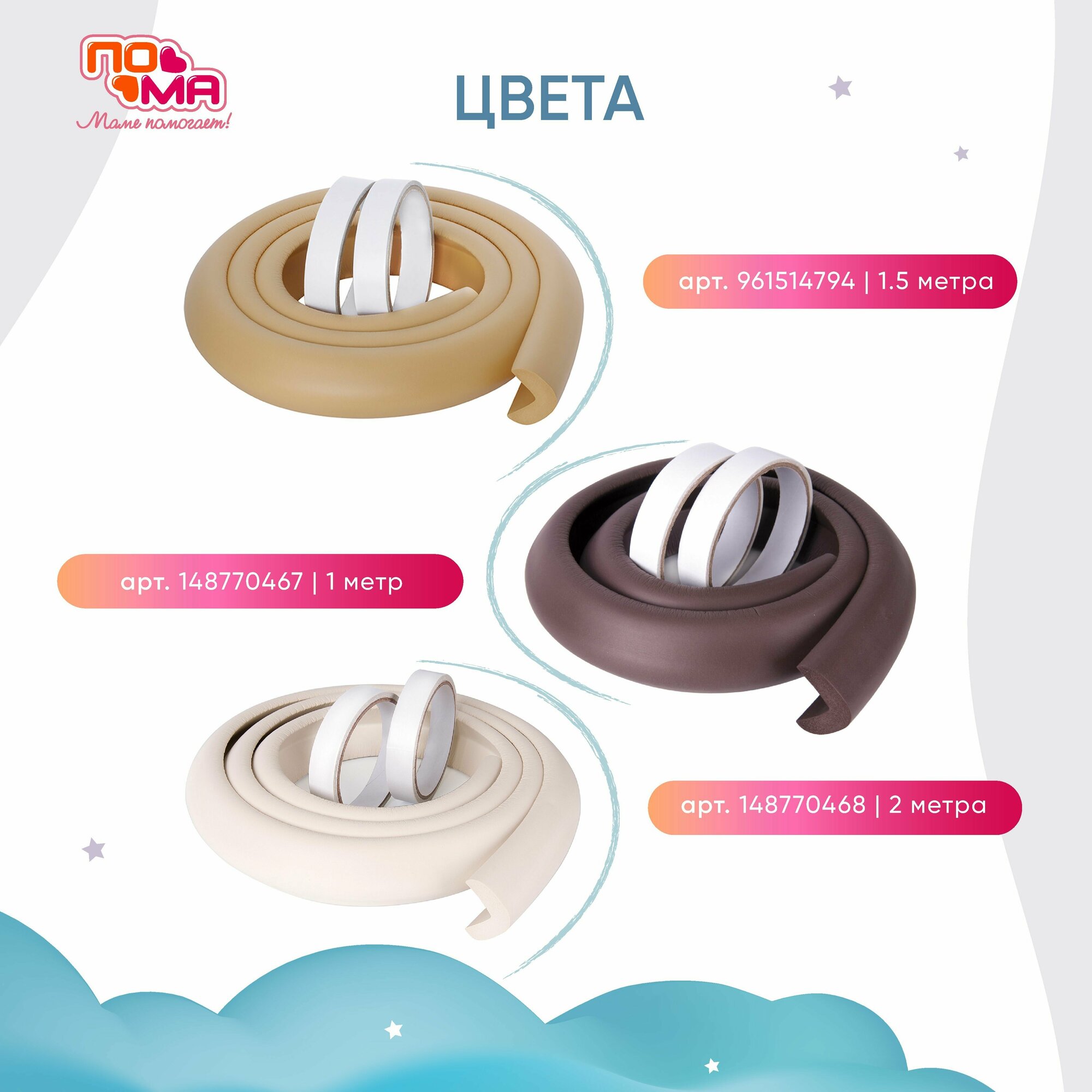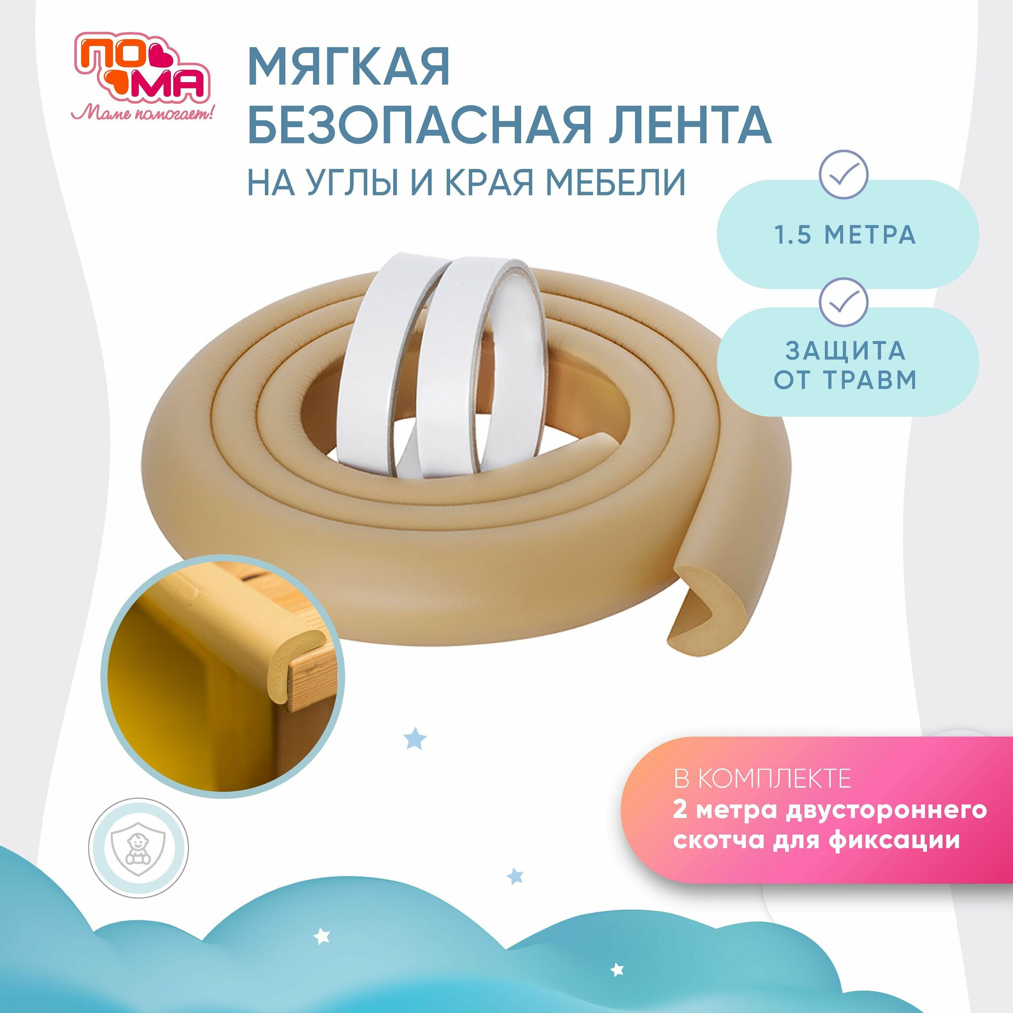 Мягкая безопасная лента для углов с дополнительным набором наклеек, 1,5м., 1 шт.