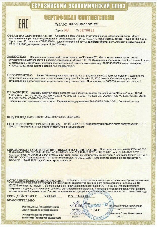 Пылесос с контейнером для пыли Gorenje VC1903GACBUCY интересное: