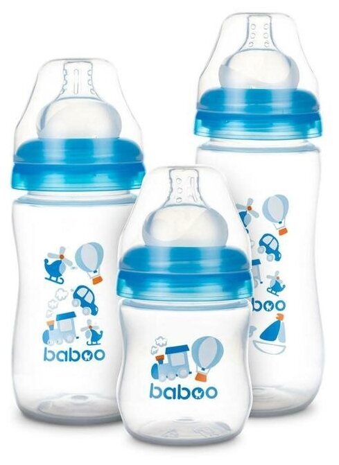 Купить Baboo Бутылочка с широким горлом и силиконовой соской 230 мл, с 3 месяцев, transport