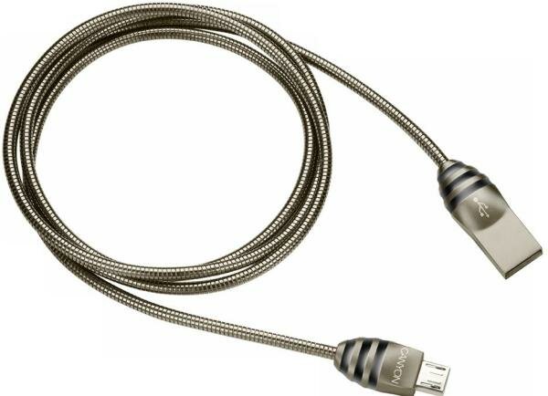 Кабель CANYON Micro USB 2.0 standard cable, Power & Data output, 5V 2A, OD 3.5mm, metallic Jacket, 1m, gun color, 0.04kg