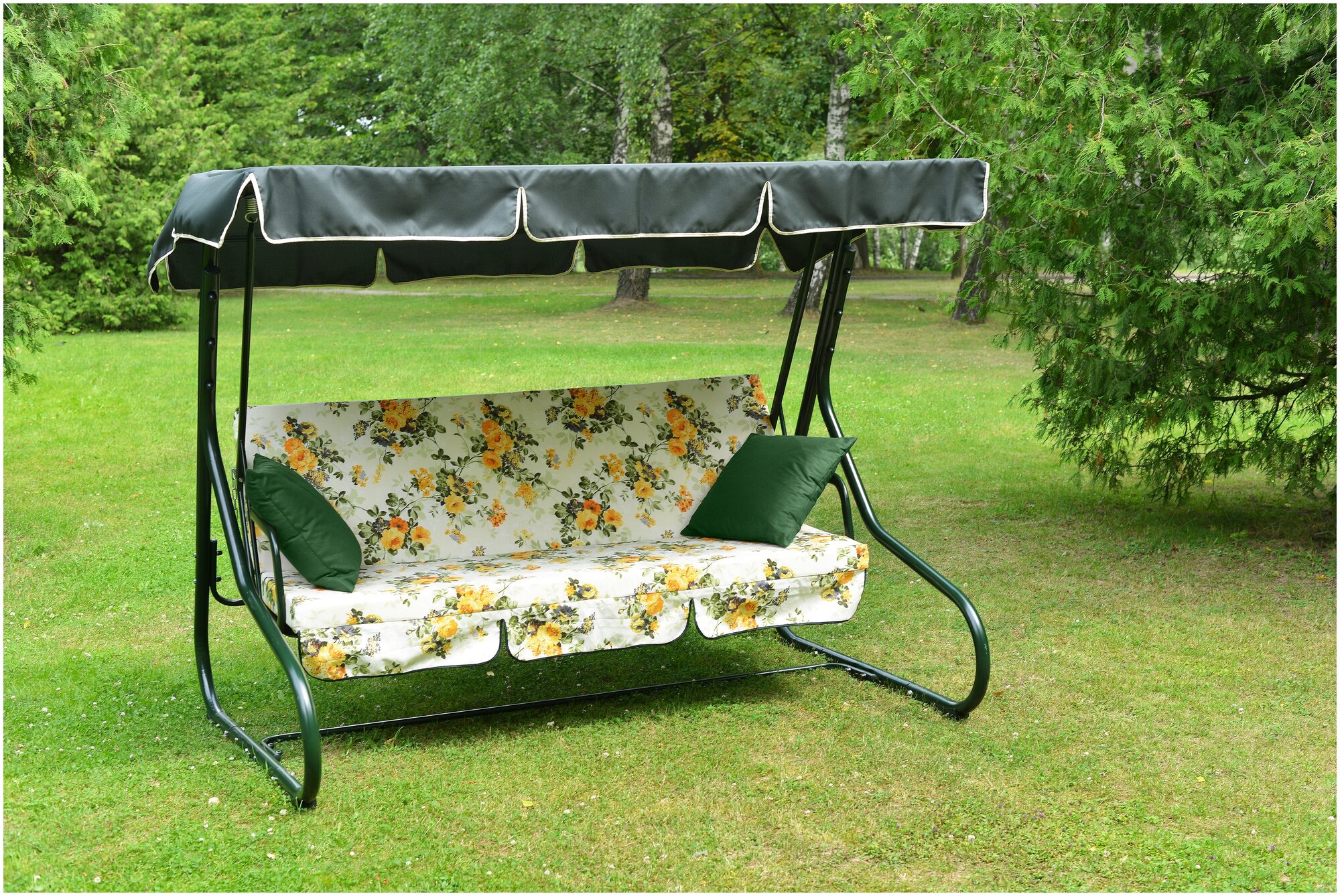 Качели с тентом трехместные Новара, Цвет обивки: бежевый, зеленый, Цвет корпуса: зеленый