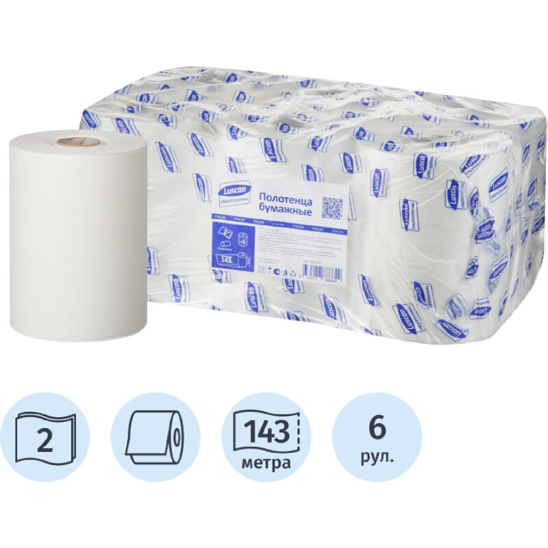 Полотенца бумажные в рулонах Luscan Professional 2-слойные 6 рулонов по 143 метра (арт.486352)
