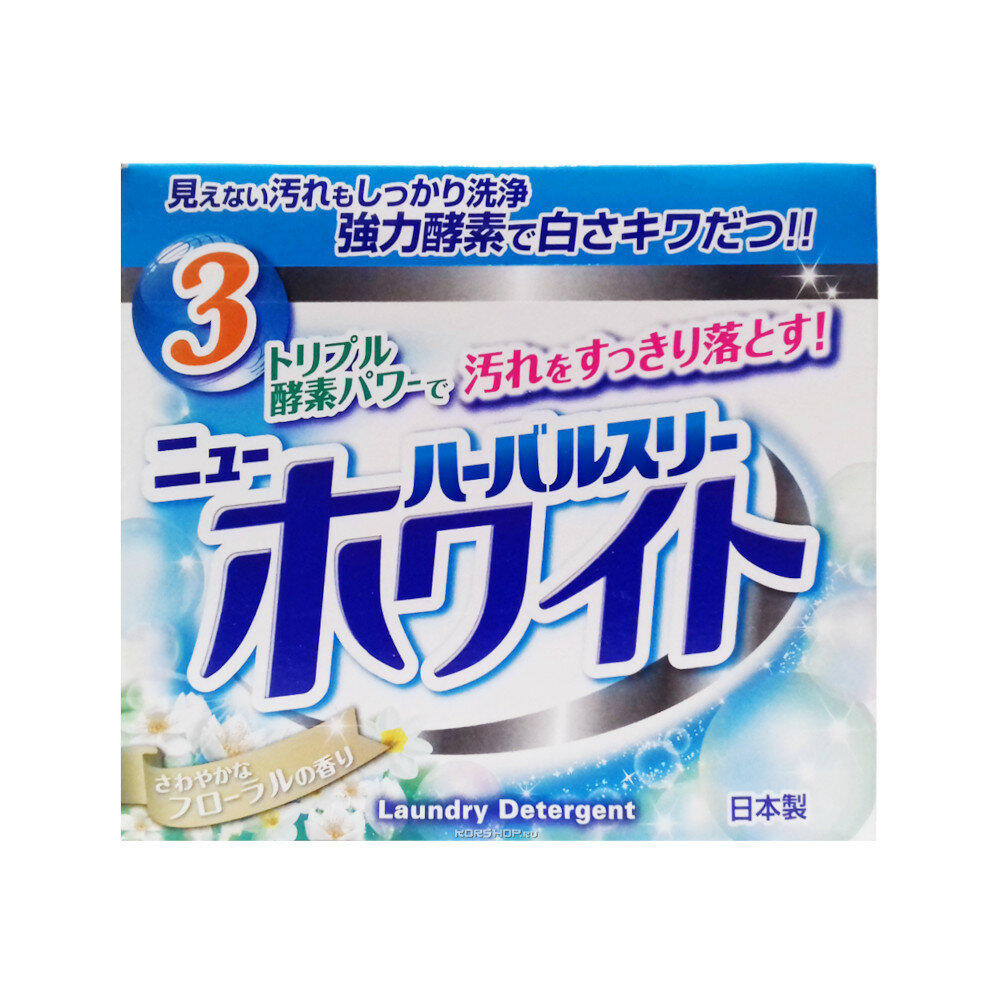 060762 Mitsuei Herbal Three Стиральный порошок с дезодорирующими компонентами, отбеливателем и ферментами, 850 гр