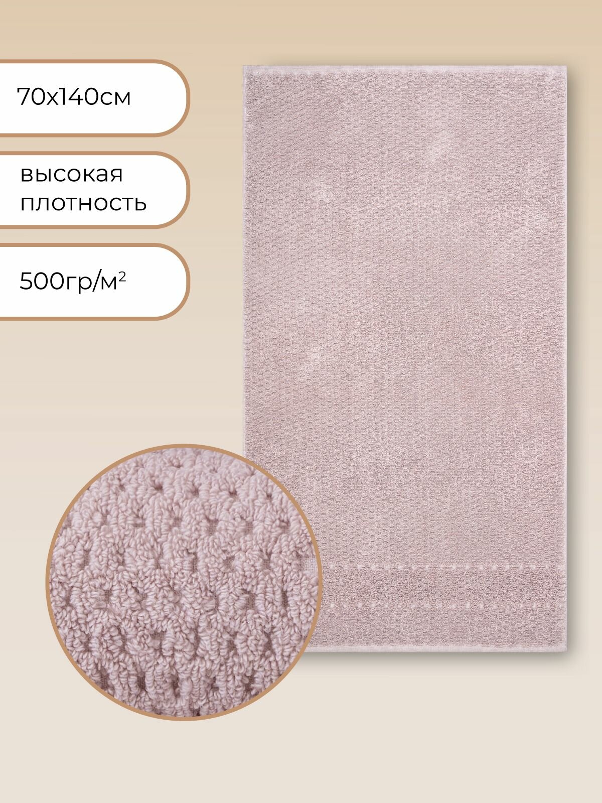 Полотенце банное махровое большое 70х140 Arno для ванной Экрю