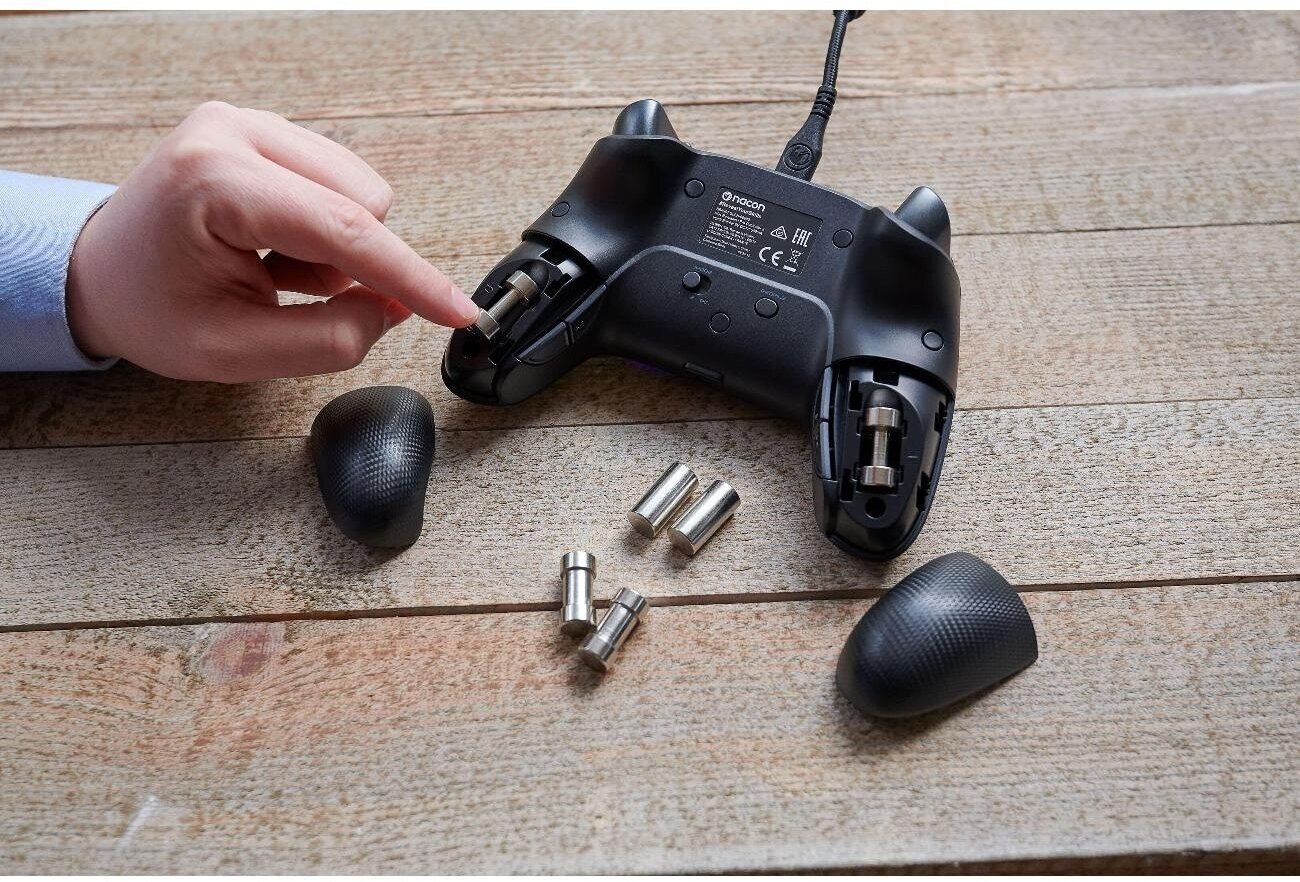 | Отзыв: | В целом геймпад удобный, по хвату очень похож на xbox. Только для фатингов он не удобен из-за крестовины, у нее большой ход нажатия и из-за этого она как ватная. Задние кнопки не очень удобные, лепестки были бы лучше, но привыкнуть можно. Звук подключенной гарнитуры раза в 2 громче, чем на стандартном геймпаде и кажется более детальным. Ход стиков по умолчанию больше, чем стандарт, но это меняется сменой проставок, если необходимо. Цена завышена. Если сравнить его с xbox elite, который стоит приблизительно также, то elite контроллер выигрывает лепестками, крестовиной и нативным подключением. Единственное преимущество Nacon, это возможность переназначать задние кнопки на лету |
