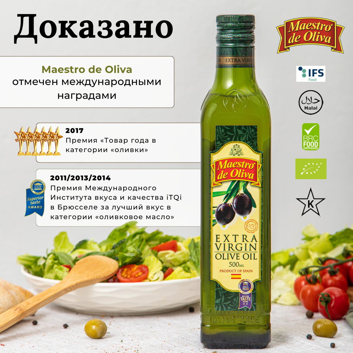 Масло оливковое Maestro De Oliva Extra Virgin, стеклянная бутылка, 0.5 л