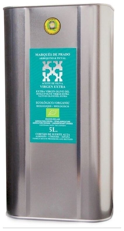 Купить Оливковое масло Extra Virgin Marques de Prado Suerte Alta, органик, 5л , ранний сбор урожая 2022, кислотность 0.2