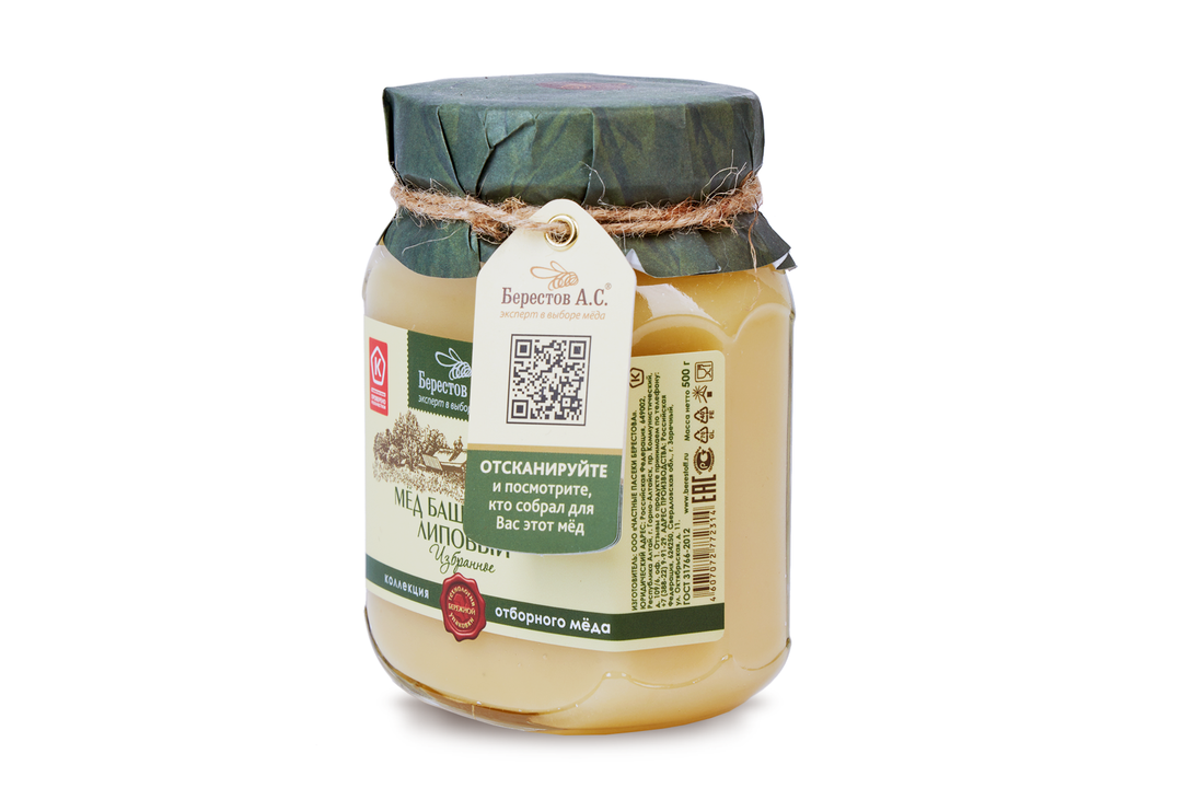 Мёд натуральный "Берестов А.С." Башкирхан Липовый нежный с/б 500г