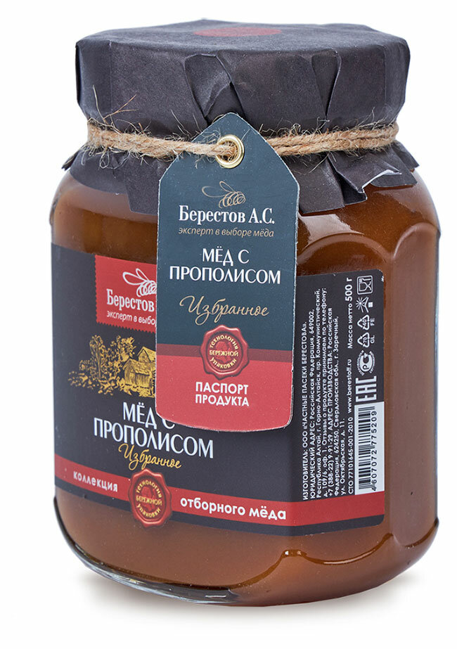 Мед "С прополисом" натуральный , Берестов А.С., коллекция Избранное, 500 г / настоящий вкусный мед интересное: