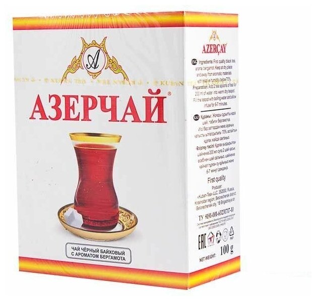 Чай черный Азерчай с бергамотом листовой, 100 г, 6 уп.