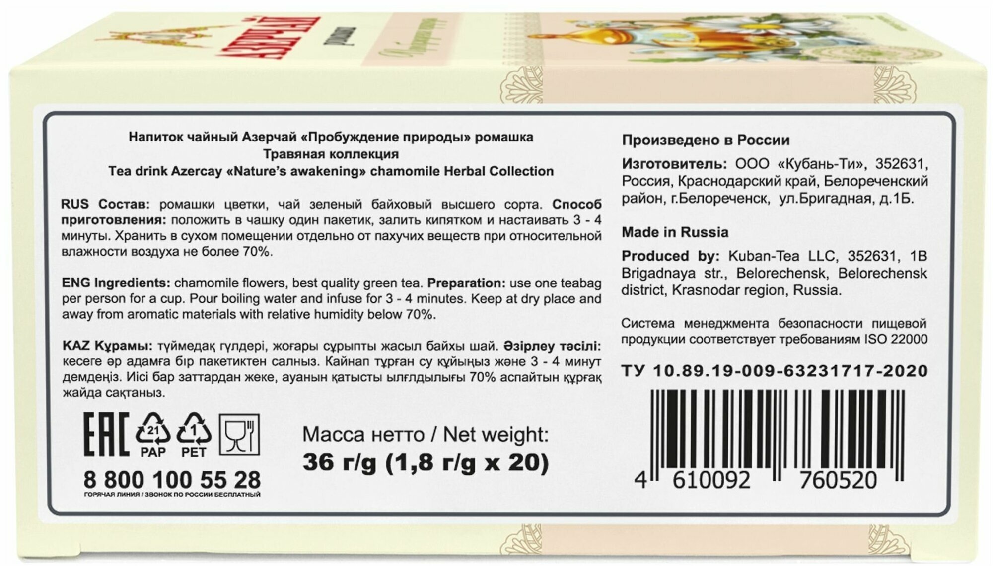Чай травяной Азерчай Ромашка в пакетиках, 20 пак. интересное: