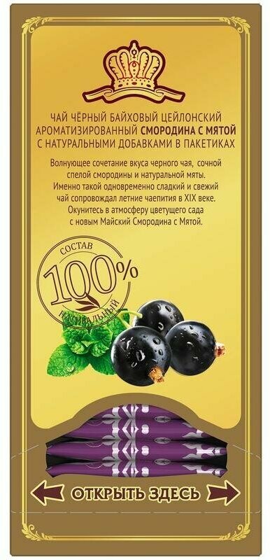 Чай Майский черный со смородиной и мятой 25 пакетиков интересное: