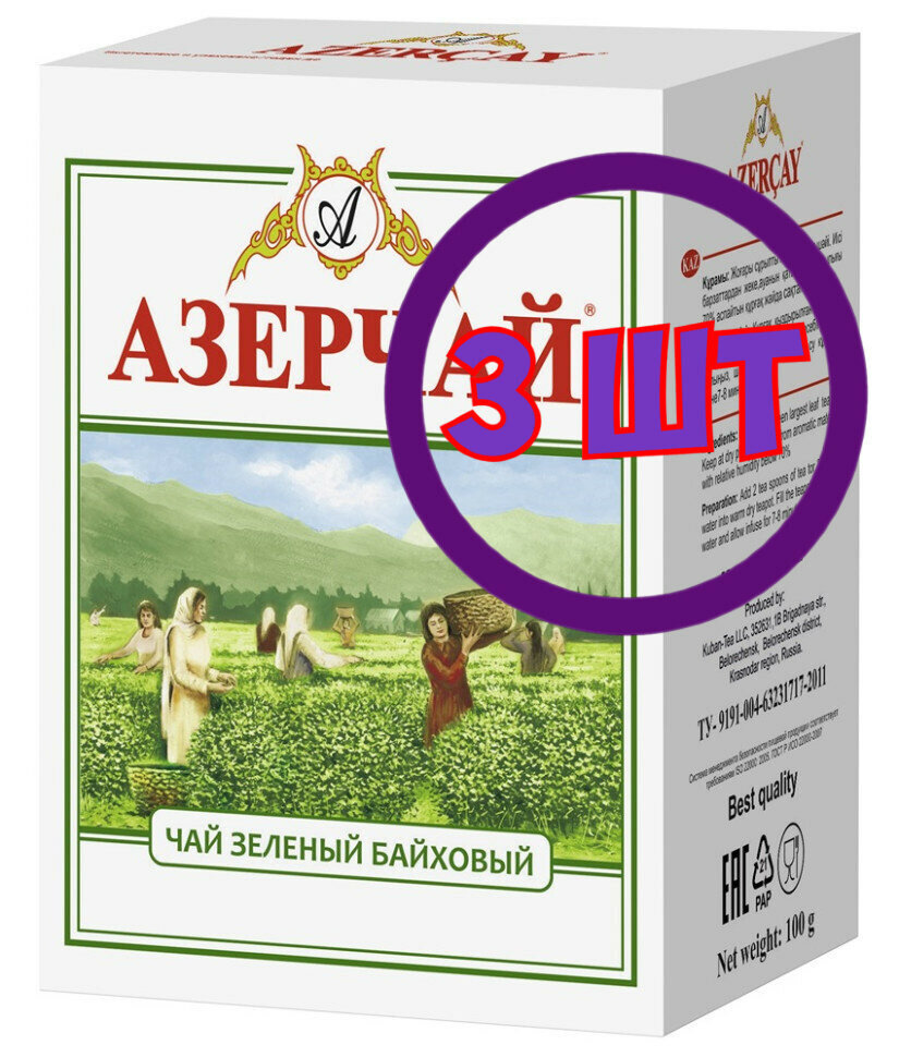Чай зеленый листовой Азерчай, картон, 100 г (комплект 3 шт.) 6826760
