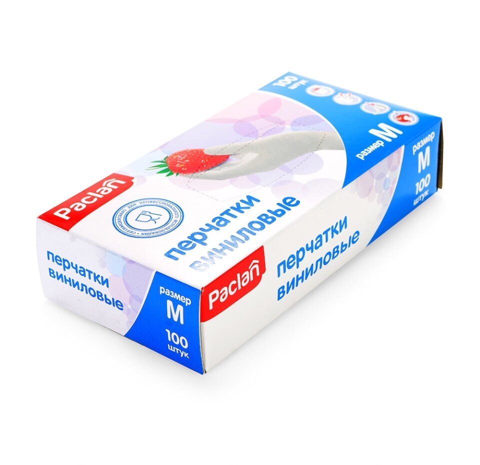 Перчатки виниловые PACLAN, прозрачные, размер М, 100 штук в упаковке