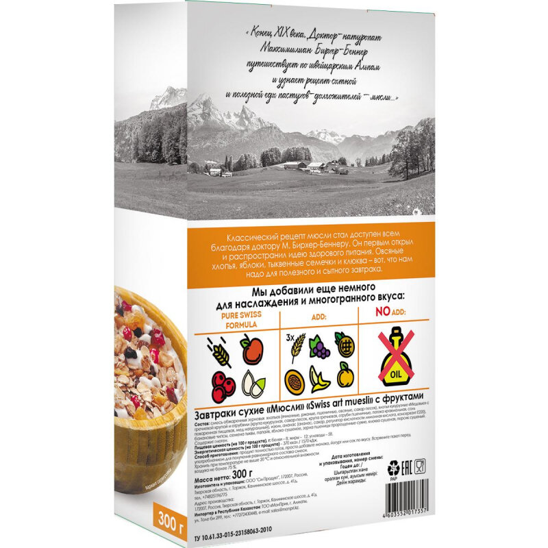 Мюсли Everyday Swiss art muesli с фруктами, 300г интересное: