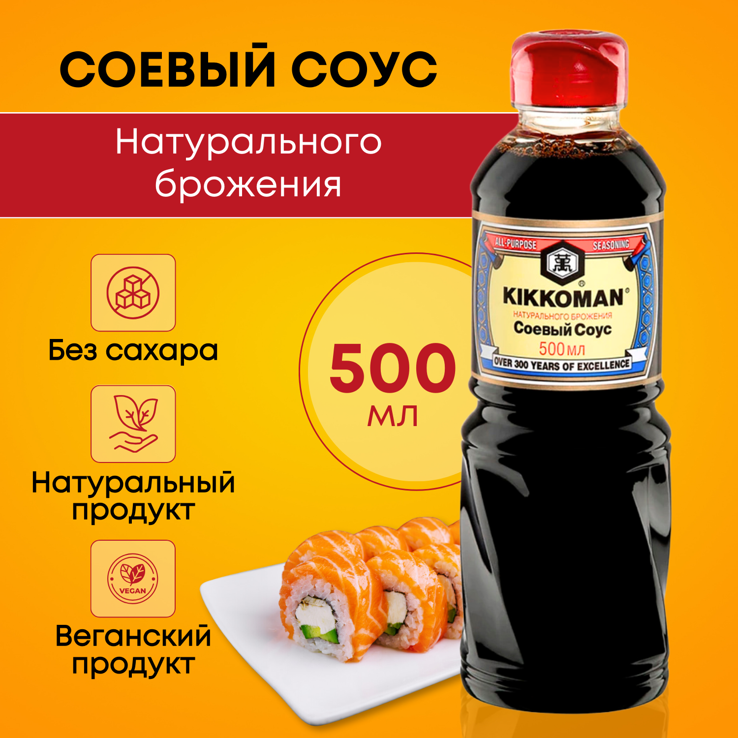 Купить Соевый соус Kikkoman 500 мл натурального брожения,Нидерланды