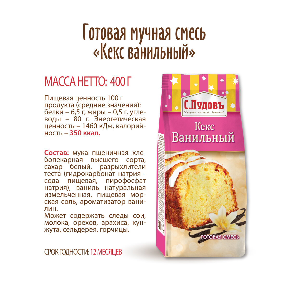Смесь для выпечки С.Пудовъ, Кекс ванильный, 400 г интересное: