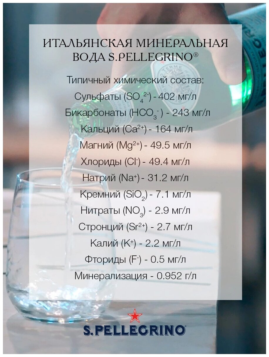 Ниже Вы можете прочитать отзывы на Минеральная вода S. Pellegrino газированная, стекло, 24 шт. по 0.5 л, ознакомится с подробными характеристиками, посмотреть интересные обзоры и фотографии на Минеральная вода S. Pellegrino газированная, стекло, 24 шт. по 0.5 л.