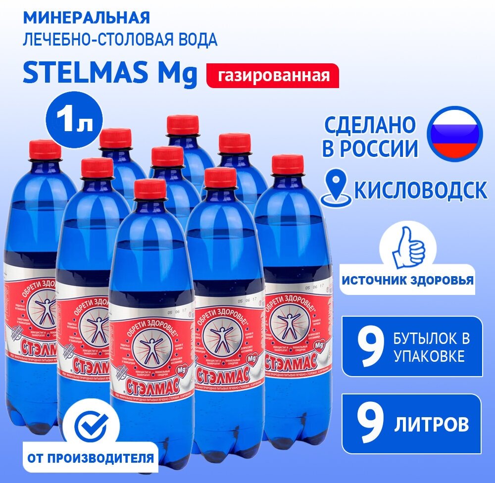 Купить STELMAS Mg минеральная лечебно-столовая вода, газированная/Стэлмас магний/Россия/1 л х 9 шт