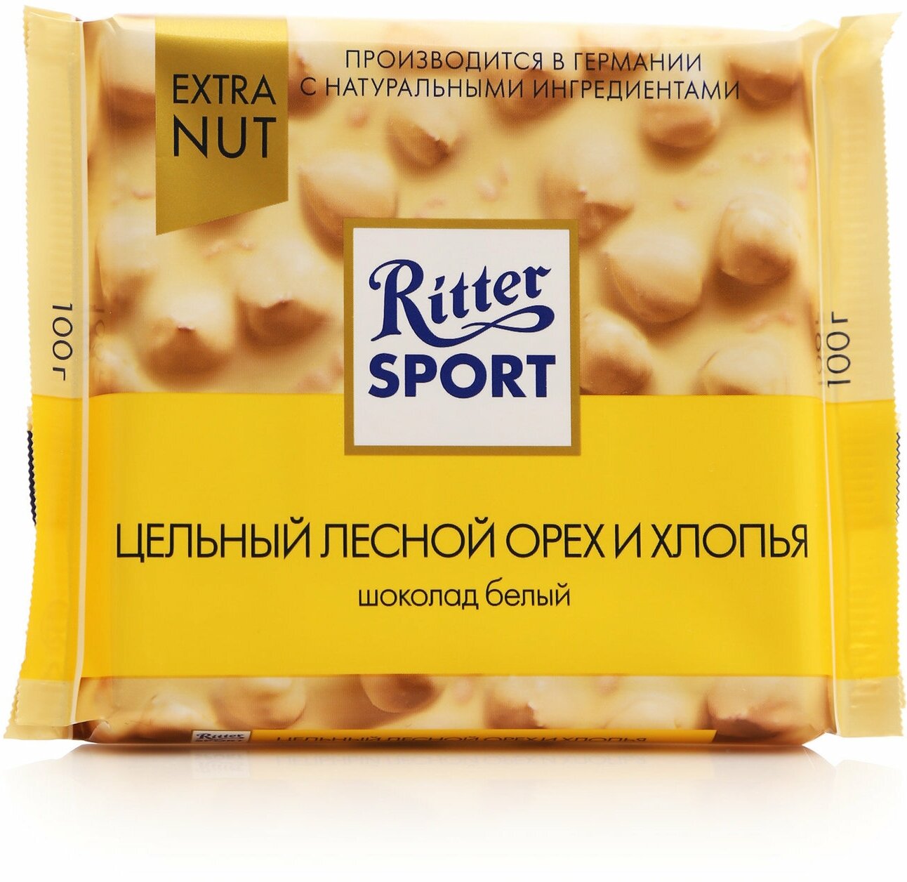Шоколад RITTER SPORT "Extra Nut", белый с цельным лесным орехом и хлопьями, 100г, Германия, ш/к01008