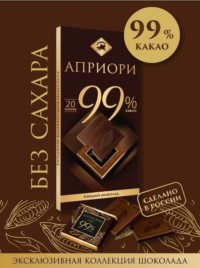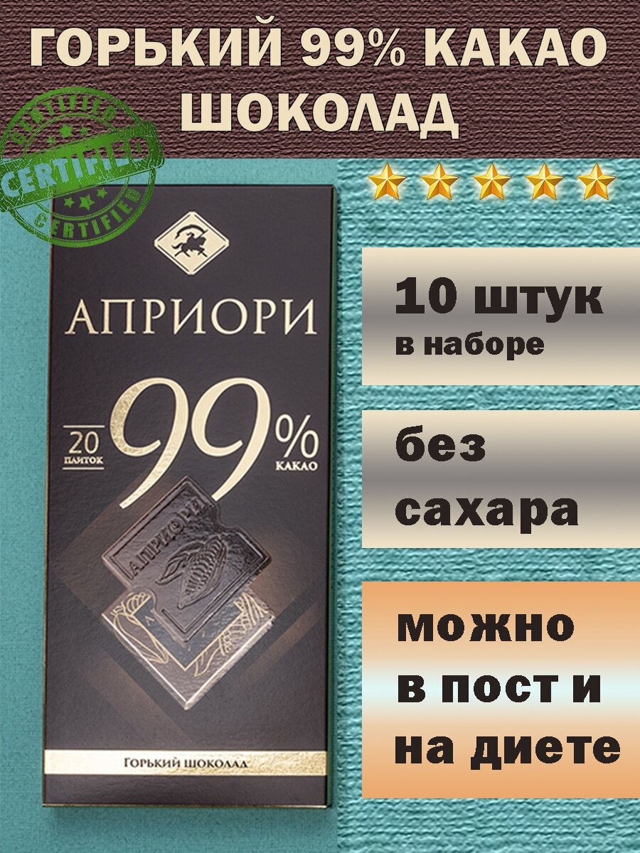Шоколад Априори горький 99% какао порционный, 5 г, 20 шт. в уп. интересное: