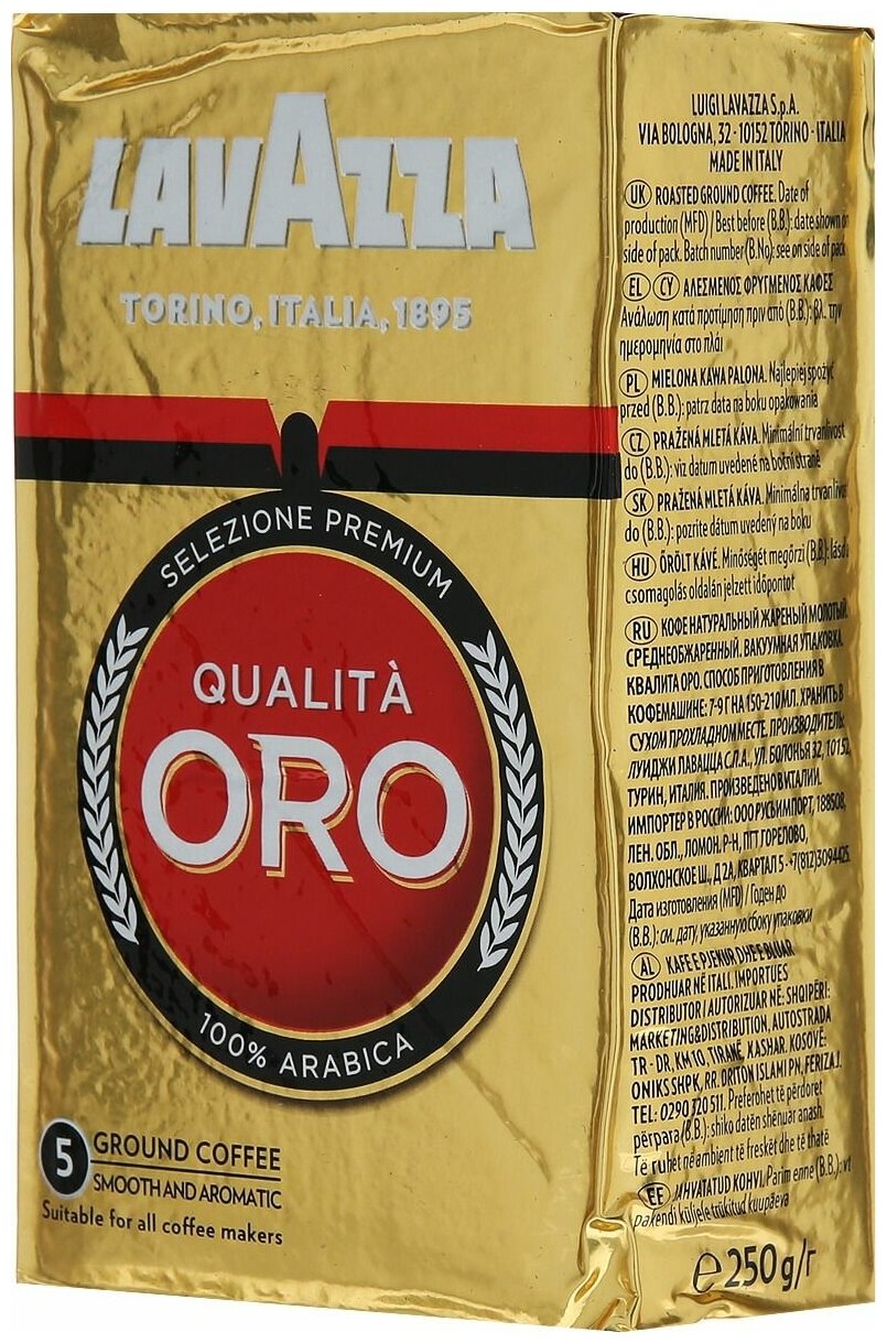 Кофе молотый Lavazza Qualita Oro, вакуумная упаковка, 250 г, 5 уп.